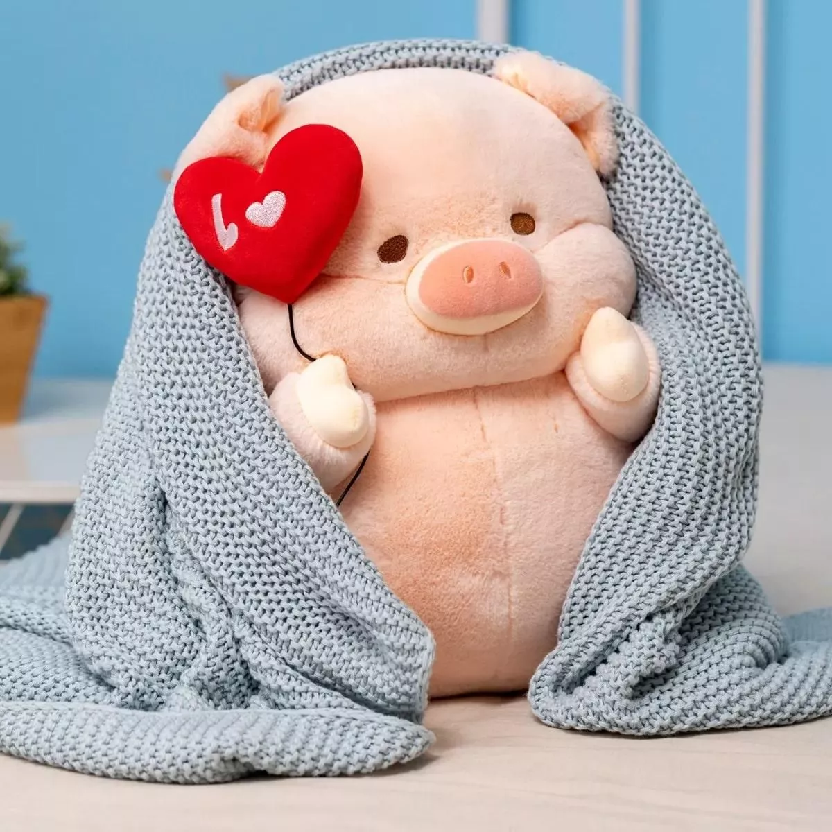 • Adorable Design: This plush toy boasts a whimsical piggy holding a love heart balloon, creating an enchanting and heart-melting appearance.