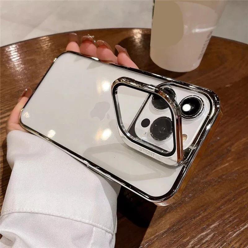 Clear Shockproof Cover with Invisible Glass Camera Lens Stand