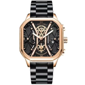 Elegant Quartz Men’s Watch with Blue Glass & Leather Strap