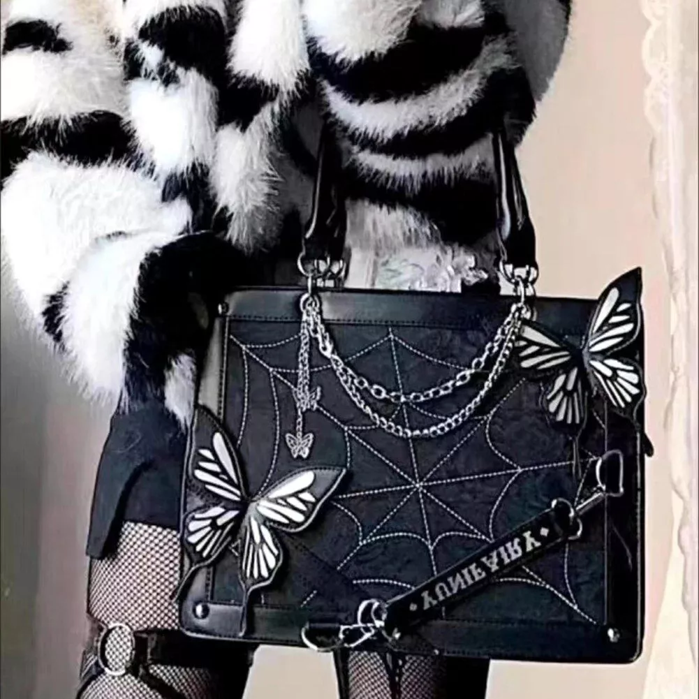 Step into a world where gothic charm meets Y2K flair with our Gothic Lolita Y2K Chain Crossbody Tote. Crafted for the fashion-forward woman, this punk vintage large shoulder bag is not just an accessory; it’s a statement. Whether you’re navigating the urban jungle or capturing moments in street photography, this handbag elevates your ensemble with an air of mystique and sophistication.