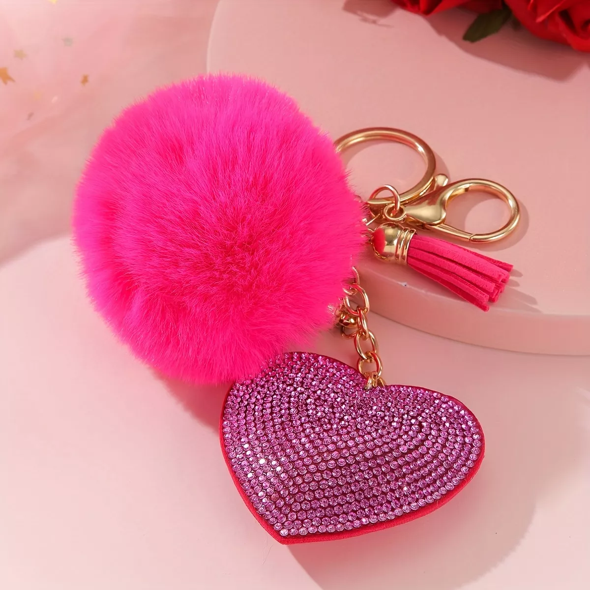 Introducing our latest addition to your accessory collection – the Heart-Shaped Rhinestone & Plush Pom Pom Keychain. A perfect fusion of elegance and whimsy, this keychain is designed to add a touch of sophistication and fun to your everyday essentials. Whether it’s adorning your keys, bag, car, or cell phone, this fashionable piece is sure to catch the eye and elevate your style.