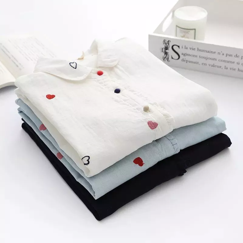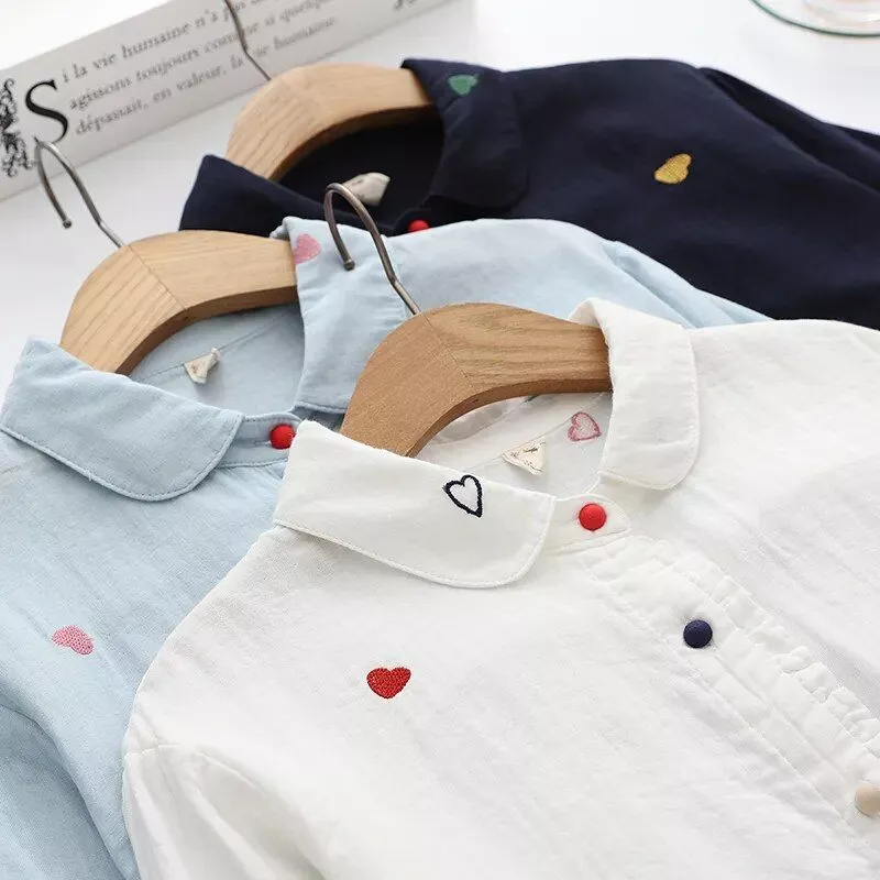Love Heart Print Women’s Long Sleeve Cotton Blouse