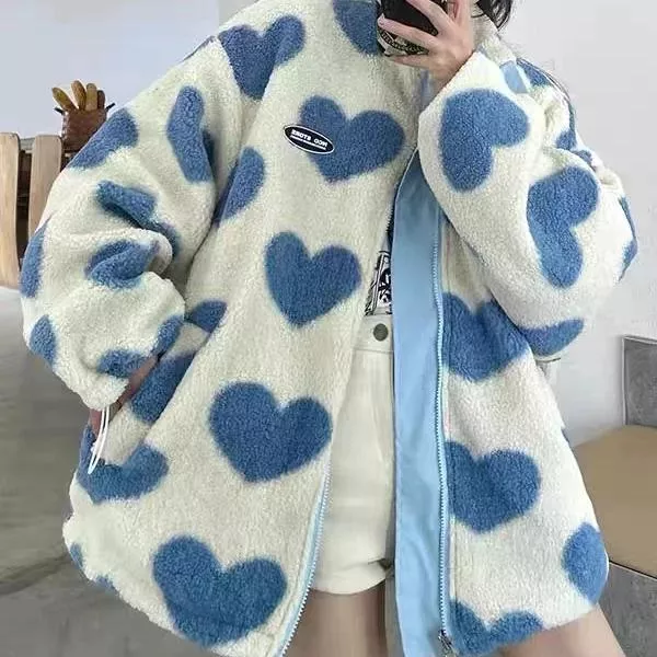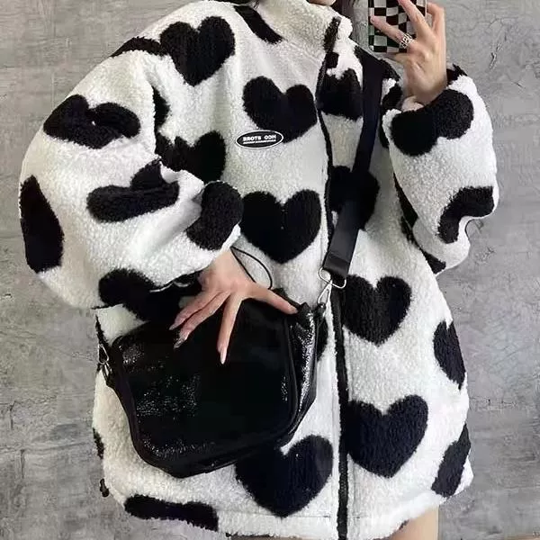 Embrace the cooler seasons in style with our Luxurious Y2K Love Lambswool Warm Jacket. Designed for those who appreciate the blend of vintage charm and modern flair, this double-sided collar jacket is the epitome of autumn and winter coziness. Its plush lambswool interior ensures you stay warm, while the stylish exterior makes you stand out in any crowd. Perfect for couples seeking a harmonious blend of comfort and style, this loose-fit jacket is a wardrobe must-have.