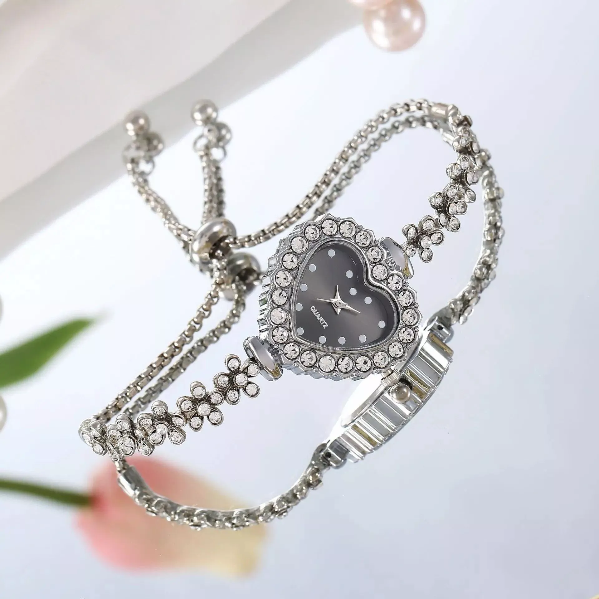 Our watch is crafted with attention to detail and quality, ensuring not only a stunning appearance but also reliable performance. The heart-shaped alloy case, adorned with shimmering crystals, captures the essence of luxury and femininity. The fashion-forward design, combined with a practical quartz movement, makes this watch a must-have accessory for any fashion-conscious woman.