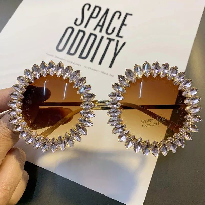 It’s not just the functionality that sets these sunglasses apart; it’s the luxurious detail. Each pair is adorned with carefully placed rhinestones, adding a dazzling effect that catches the light beautifully. The unique round shape complements various face shapes, making them a versatile addition to any wardrobe.