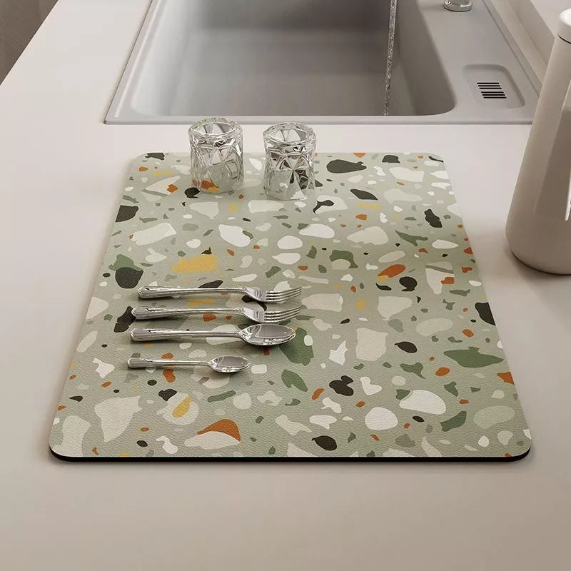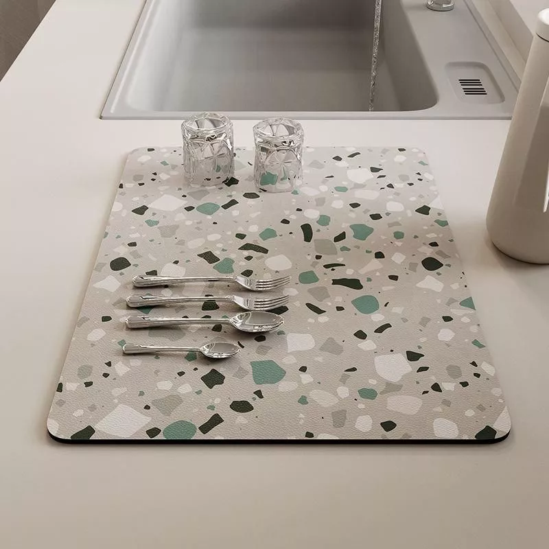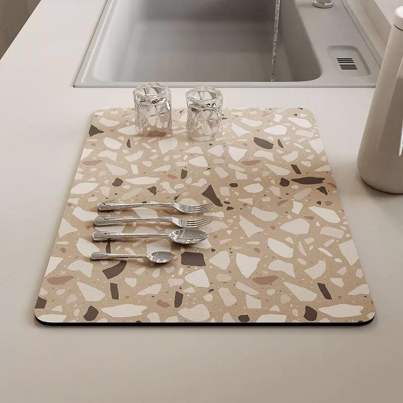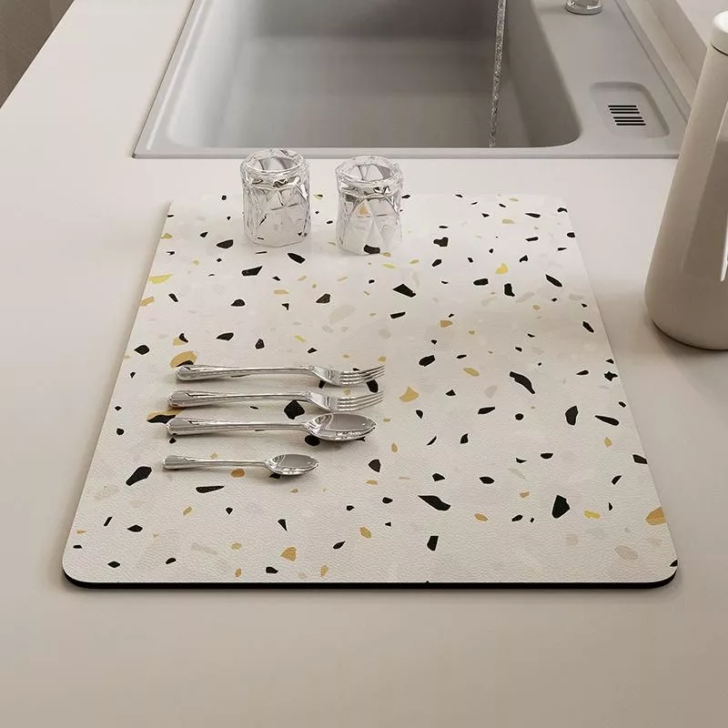 This mat is your go-to accessory for various applications. Use it as a drying pad for dishes and cups in the kitchen, as a protective mat for your bathroom essentials, or as an elegant placemat for your dining table. It’s perfect for daily use and is a must-have for hosting dinners, parties, or even for your regular coffee break.