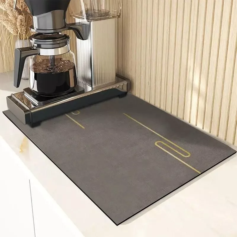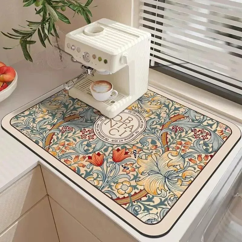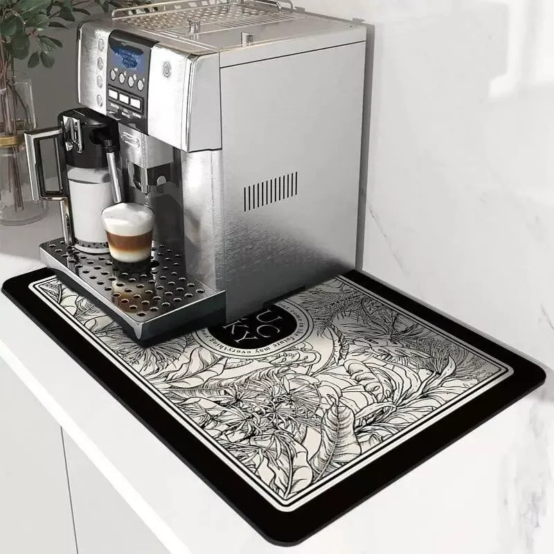 Our product stands out with its unique blend of functionality and durability. The faux velveteen and rubber material ensure a soft yet robust structure, making it an enduring addition to your kitchen. Its splash-proof design efficiently absorbs water and coffee spills, maintaining a clean and tidy countertop. Moreover, its efficient draining feature prevents mildew and bacteria, promoting a hygienic kitchen environment.