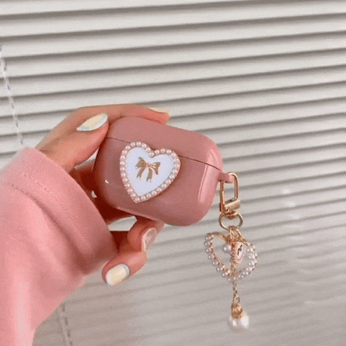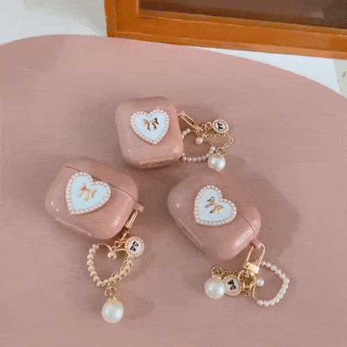 Pearl Heart Pink Tassel AirPods Case with Bowknot Keyring