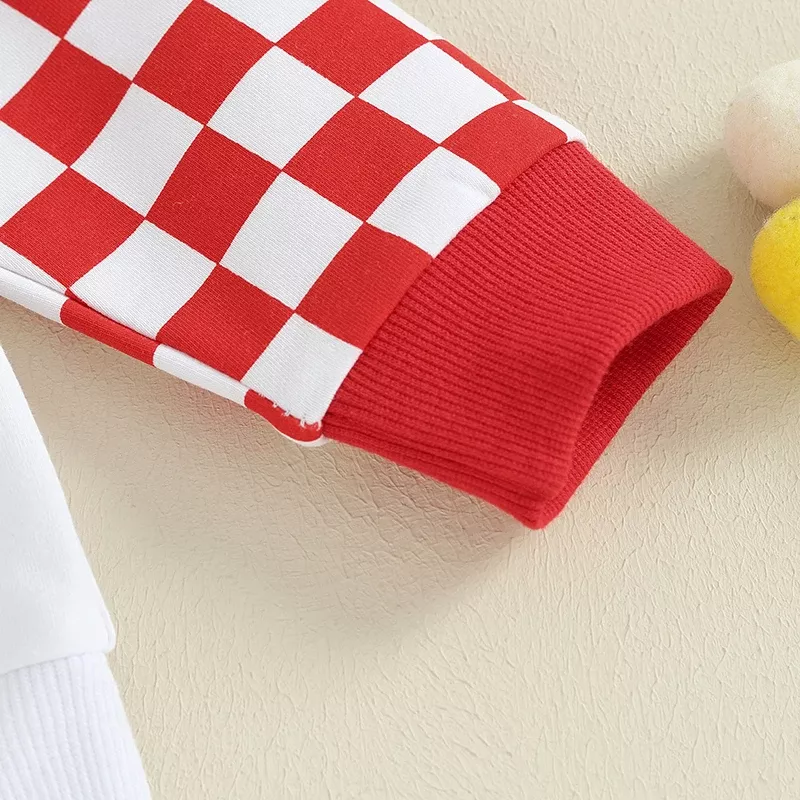 Celebrate love and the joy of growing up with our Toddler Boys Valentine’s Day Outfit. This adorable two-piece set, featuring a heart and checkerboard print long sleeve sweatshirt paired with matching pants, is designed to make your little one stand out while offering comfort and style. Crafted with a blend of 70% cotton and 30% polyester, it ensures softness against your toddler’s sensitive skin, perfect for both festive occasions and everyday wear.