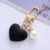 Black White Frosted Heart Keychain with Pearl Charms Trendy Headphone Case Bag Ornaments for Couples Friendship Gift Accessories
