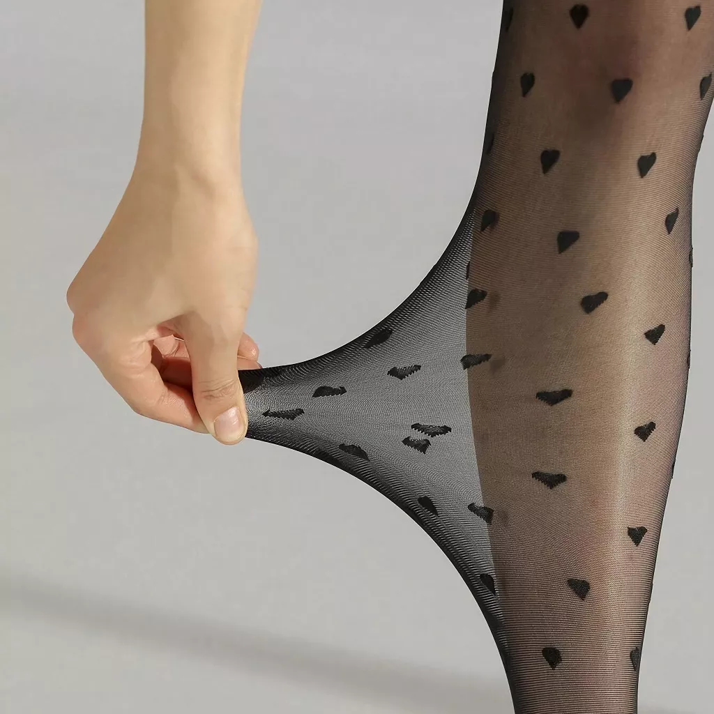 Our stockings boast a unique blend of spandex and nylon, ensuring a snug yet comfortable fit that adapts to your body. The delicate heart print pattern adds a playful yet chic touch to your outfit, making these stockings a versatile addition to your wardrobe. With their thin material, they are ideal for summer wear, offering breathability without compromising on style.